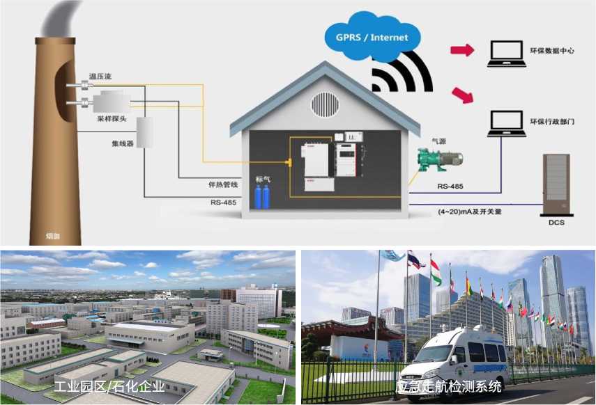 經(jīng)氣樣采集輸送系統(tǒng)、VOCs在線分析儀、GPRS/CDMA等將數(shù)據(jù)傳送至環(huán)保部門,系統(tǒng)搭載自動零點校 正、數(shù)據(jù)內(nèi)存、VOC濃度信號輸出、VOC濃度警報、感應(yīng)異常警報等功能。